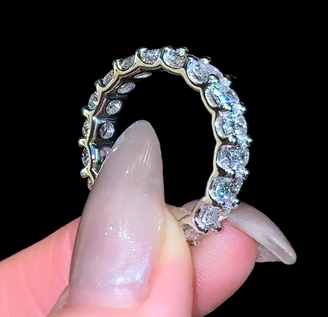 This is our Oval Eternity. Its features oval diamonds set in a U-Prong Eternity Setting. It is similar to our Oval Queen Wedding Band, except without the MicroPavé on the inside/outside.